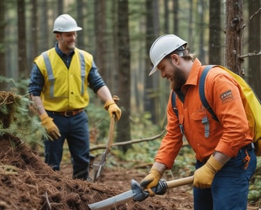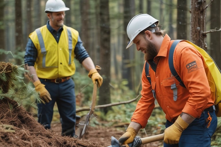 Plantering, röjning, stormröjning och säsongsarbete på gårdar som plantering, skörd och allmän gårdshjälp.